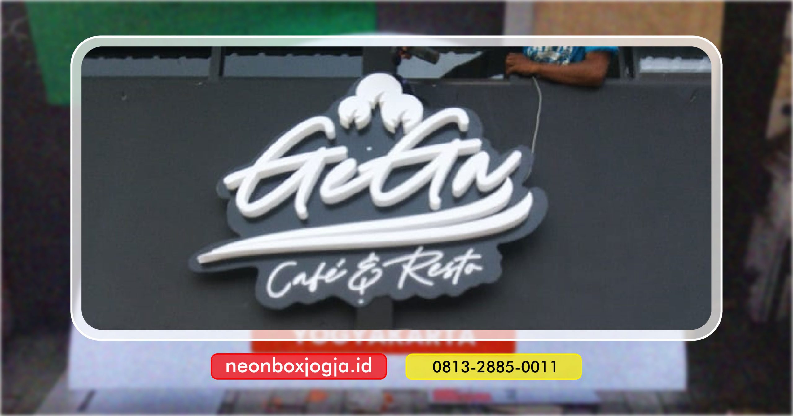 Huruf timbul atau 3D lettering adalah pilihan populer untuk signage, reklame, atau dekorasi. Desain huruf yang menonjol ini bisa memberikan kesan elegan dan profesional pada tempat usaha Anda. Selain itu, huruf timbul mudah terlihat dari jauh, sehingga sangat efektif untuk menarik perhatian pengunjung atau calon pelanggan.